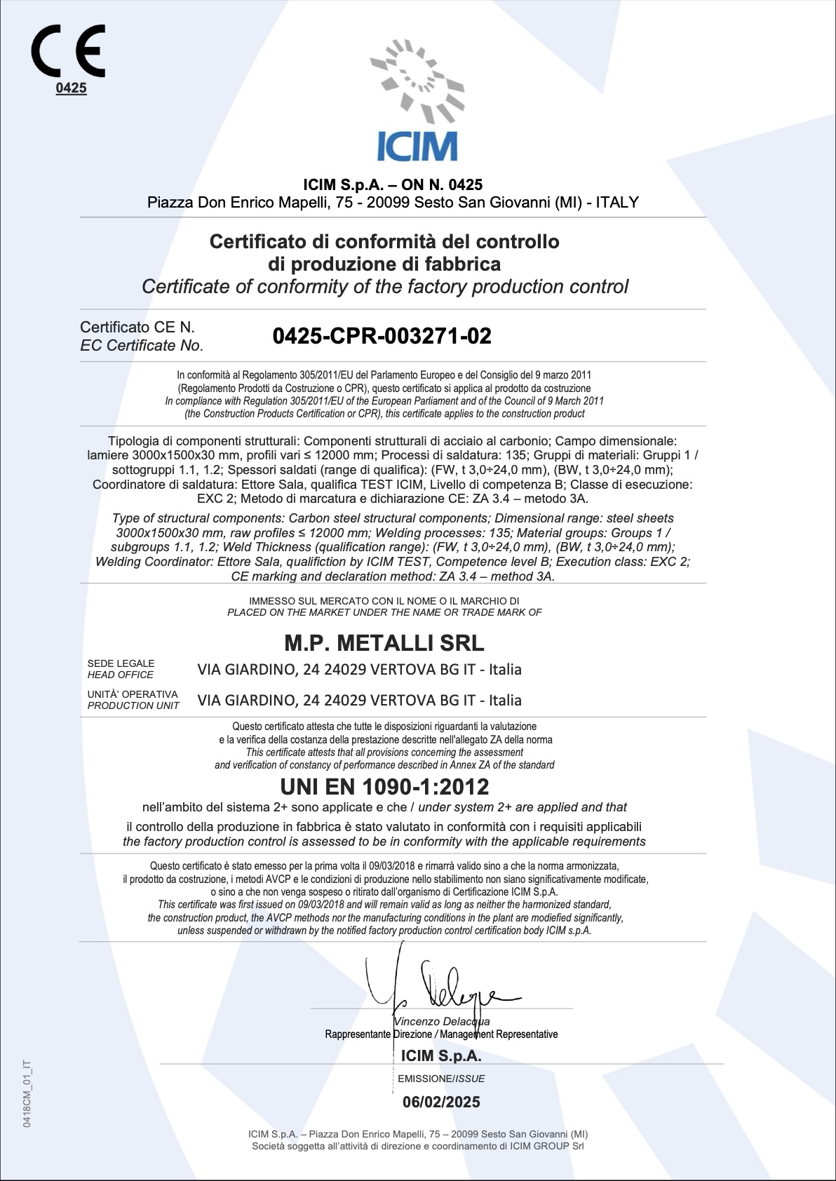 Certificazione CE secondo norma UNI EN 1090-1:2012