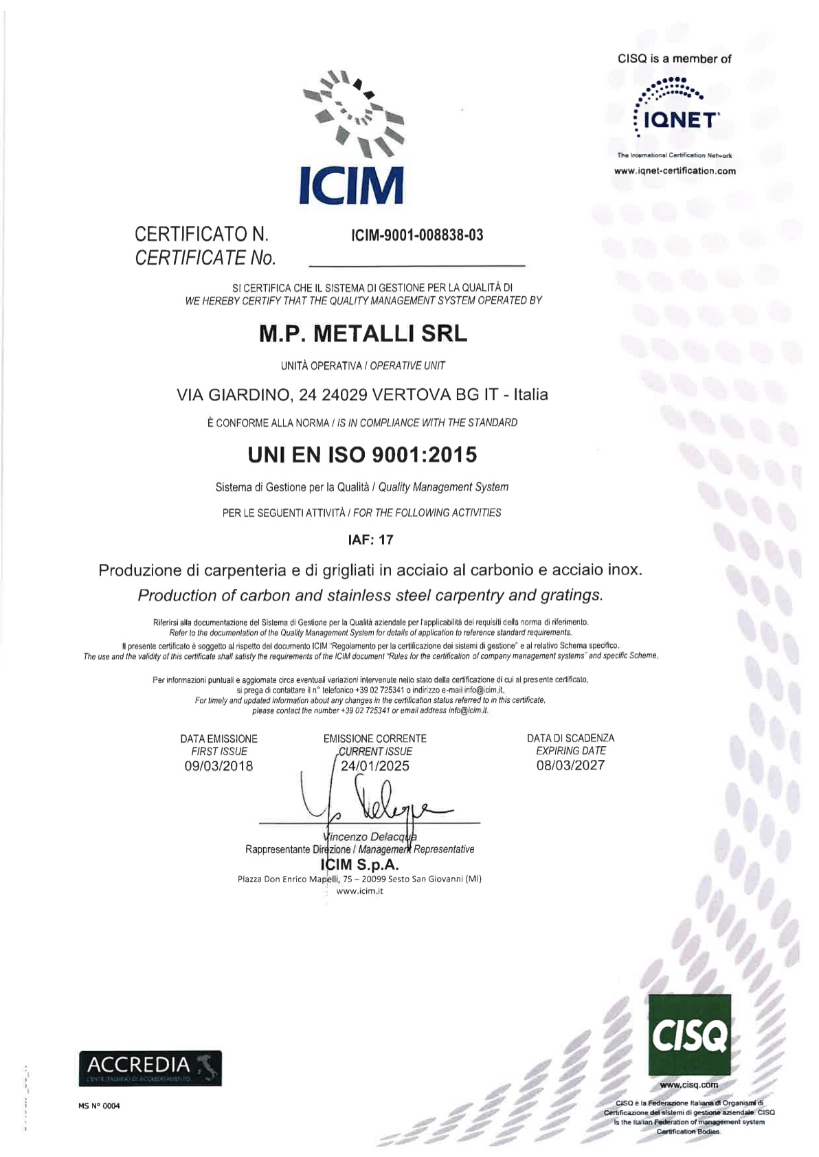 La nostra carpenteria metallica, certificata secondo le norme UNI EN 1090-1:2012 in classe EXC2, realizza manufatti di alta qualità per privati, aziende ed enti pubblici in tutta Italia.